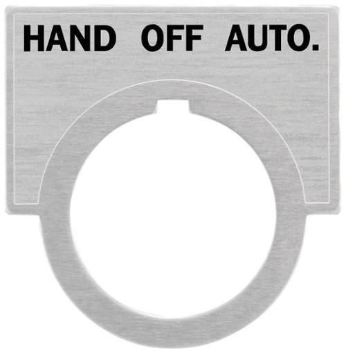 Siemens Legend Plate, Class 52 2-Row Large Non-Illuminated, Half Round Plate Shape, Legend: Hand-Off-Auto, 1-7/16 in Height, 2 in Width, Aluminum Alloy, Brushed Aluminum Field