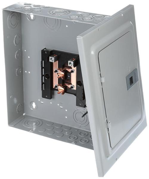 Interiors offer removal in sec|1-piece busbar construction designed for use only with circuit breakers|Positive load side circuit breaker hookrails|With copper bus|4 to 2/0 AWG aluminum/copper wire