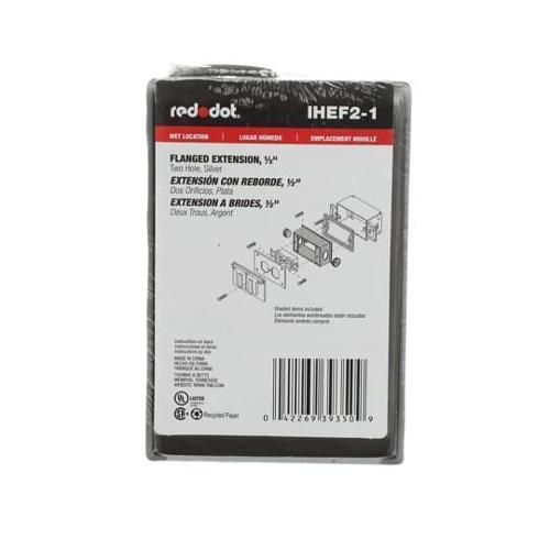 Red Dot Extension Adapter, Flanged, 1 Gangs, 4-1/2 in Length, 3-1/2 in Width, 1-7/8 in Depth, 21.3 cu-in Capacity, Threaded Mounting, Die Cast Aluminum, Powder Coated, Silver