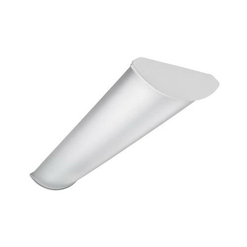 Impact resistant 25% DR acrylic diffuser attaches to die cast ends by simple hook and pin design with controlled tension provided by sonically welded end plate, providing secure installation and easy maintenance|Decorative die cast end caps provide added durability|Volumetric illumination is achieved by creating an optimal mix of light to vertical and horizontal work surfaces, rendering interior space, objects and occupants in a more balanced luminous environment|Crescent shape linear faceted refractor provides uniform light distribution and high angle brightness control|Thermally protected, resetting, Class P, HPF, non-PCB, ballast is standard, 1.0 ballast factor|Injection molded plastic light traps prevent light leaks between shielding and end plates and centers diffuser on channel